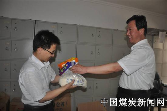 6月9日西卓煤矿工会及时启动夏季送清凉活动,该矿党总支书记、工会主席王交奇带领工会人员向奋战在一线的工人们送去精心准备好的白糖、果汁等慰问品,并亲切叮咛他们要保重身体,做好防暑降温工作。