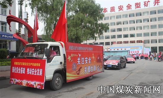 最后,“我宣布,‘强化安全基础、推动安全发展’阳煤五矿2013年全国安全生产月高潮日宣传活动下基层进社区宣传车出发。”安全宣传小分队在五矿安监处处长宋慧一声令下,由宣传车带路,青年汽车队奔赴各社区宣传安全小常识,并对“安全生产文明家庭”进行挂牌慰问。