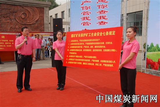 在呼唤安全、期盼安全、关注安全的氛围中,五矿矿长王冬平宣布《科学发展、安全发展》安全生产月高潮日活动开始,并宣读了《煤矿矿长保护职工生命安全七条规定》。