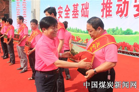 ![]() 活动在热烈的氛围中,五矿党委书记祁致祥,党委副书记、工会主席李泰,纪委书记、副矿长史冬瑞,副矿长王富明,安监处处长宋慧分别党员责任区、党员先锋岗、青年安全示范岗、文明家庭、十大反“三违”标兵、十大查隐患能手、十大青年安全卫士和十大优秀群监网员颁了奖。