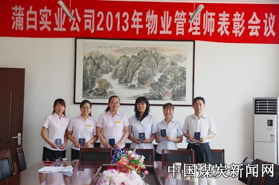6月17日,蒲白煤化实业有限公司物业管理师颁证仪式在公司二楼会议室里隆重举行。仪式上对2013年度考取物业管理师的六名在职员工进行了表彰。