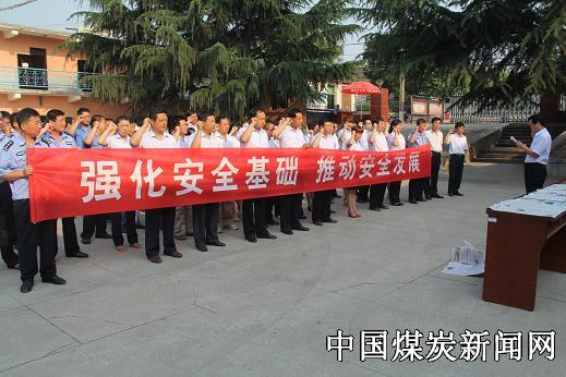 “我们郑重承诺,加强各项安全管理,不违反劳动纪律,忠诚敬业……”6月17日上午,陕煤蒲白实业白水矿社区大院里职工们队列整齐,举起右手庄严承诺,随后在安全横幅上正重地写上自己的名字。