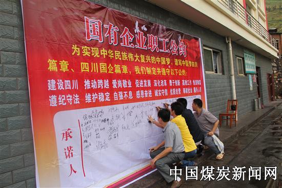 本网讯(李艳平 李志超报道) 6月27日,川煤集团攀煤大宝顶矿举行了《国有企业职工公约》签名仪式,来自该矿各个岗位上的干部职工纷纷在公约上签下了自己的姓名。 在“实现伟大中国梦,建设美丽繁荣和谐四川“主题教育活动中,大宝顶矿通过各种形式,积极引导全体员工将“中国梦”与“攀煤梦”和“个人梦”相结合,汇聚建设平安和谐新矿区的强大力量。职工们纷纷承诺将会遵行“建设四川、推动跨越、爱岗敬业、促进发展、深化改革、勇于创新、高效工作、创造财富、遵纪守法、维护稳定、自强不息、感恩奋进、诚实守信、优质经营、奉献社会、服务人民”的《国有企业职工公约》,为实现中华民族伟大复兴的中国梦,谱写中国梦四川篇章、四川国企篇章。
