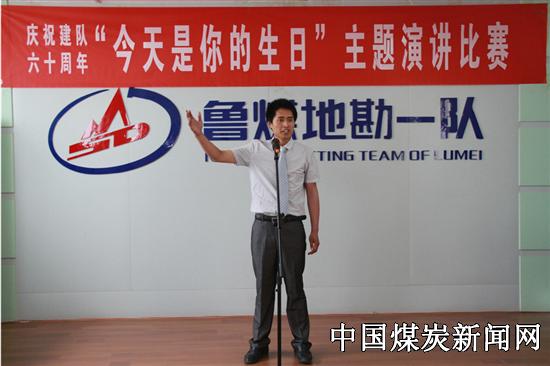 为庆祝建队60周年,歌颂建队以来取得的辉煌成就,激发职工工作热情,增强职工凝聚力,近日山东省煤田地质局一队组织了“今天是你的生日”主题演讲比赛。图为参赛选手比赛场景。