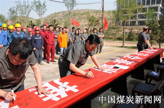 ![]() ![]() ![]() 6月1日上午,山西王家岭煤业有限公司隆重举行“安全生产月”启动仪式。公司班子成员、各部门、监理公司、各施工单位100余人在印制活动主题“强化安全基础,推动安全发展”的条幅上签名。