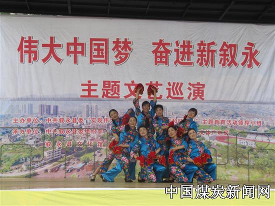 10时许,文艺演出在观众们“没有共产党就没有新中国”的合唱声中拉开帷幕。演员们表演的舞蹈,独唱、快板、单口相声等节目精彩纷呈,表达了人民对党、对祖国的热爱和祝福,展示了叙永人民团结奋进,昂扬向上的精神和实现伟大中国梦的信心和决心,赢得了在场观众的阵阵掌声。表演还增加了互动环节,进行了中国梦、地方梦、煤矿安全等知识抢答赛,观众纷纷举手抢答,把活动推向高潮。 据了解,此次文艺巡演活动是叙永县委为深入推进“实现伟大中国梦、建设美丽繁荣和谐四川”主题教育活动,切实抓好宣传引导工作,营造全民参与践行“中国梦”,推动叙永发展新跨越的良好氛围,达到进一步统一思想、凝聚共识的目的而举办的。给广大干部职工带来了精神食粮,激励广大干部职工、群众以主题教育活动为契机,将自己的梦想和“中国梦”相融合,共同谱写中国梦新篇章。