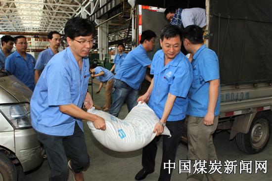 图为公司董事长、党委书记杨川,总经理王怀成为生产一线送清凉的场景。