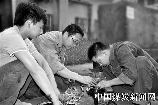 川煤集团广旺公司唐家河矿把“师带徒”作为提升青工技能有效平台,指定技术能手为本单位青工师傅,落实师徒教与学的责任,要求亲自传授技术要达到一定的时间,并保证合格出师。图为师傅正在传授配件维修技术。