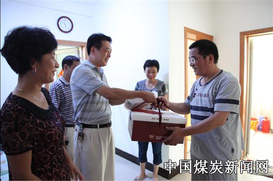 8月15日上午,中煤矿建机电安装工程处工会主席王东一行,走进处“十佳标兵”陈道金的家中,为他过生日、送祝福。自2013年伊始,该处工会为增强企业职工凝聚力,持续开展“标兵过生日 送蛋糕 送祝福”活动,以此弘扬标兵模范带头作用,为企业积极营造“尊重劳动、尊重知识、尊重人才、尊重创造”的良好发展氛围。