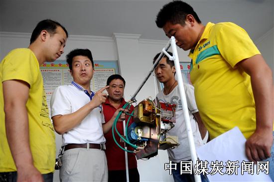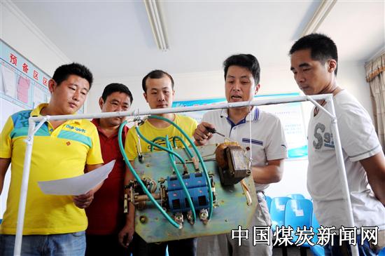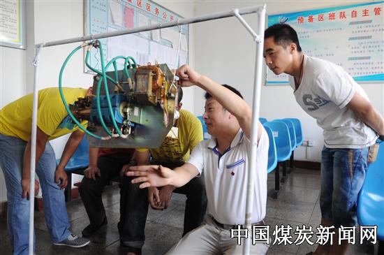 本网讯 9月17日,安徽皖北煤电刘桥一矿预备区“机电大王”包长虹(左二)在为青工传授“绝活”。近年来,这个矿每年一届的岗位技能大赛让这些能手脱颖而出,“星光熠熠”。同时发挥“明星”的传、帮、带作用,“复制”出更多的技术能手,成为矿井安全生产的重要保障。