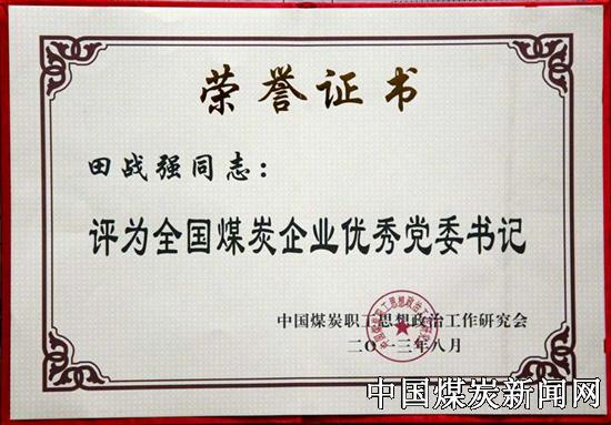| 田战强获全国煤炭企业优秀党委书记称号 | |||