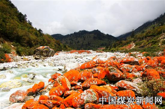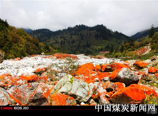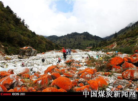 (雅家情海).红石滩 景区是位于海螺沟与“情歌城”康定之间的景观走廊,素有“中国高山植物园”、“中国红石公园”之称,生态风光经典奇绝,有世界唯一的红石河谷。 红石滩场面最为壮观,色彩艳丽,与沟内数座雪山(贡嘎卫峰中山峰、玉狮峰、元宝峰、长寿女神峰)相映而成“雪山红石”状阔美景。红石滩的面积达二百万平方米。据专家称,如此大规模的由地衣类植被附着而形成的红石滩非常罕见,为亚洲最大的红石滩,堪称世界奇观。也被称为“世界红石公园”。