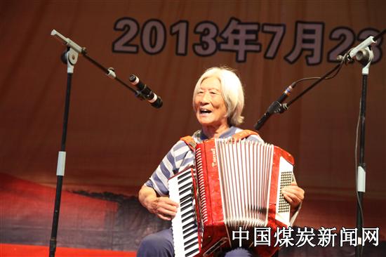 朱开文老人生于1928年,22岁时光荣地成为一名中国人民解放军战士,1956年转业回地方,在绿水洞煤矿参加工作。据朱老回忆,他这一生一共写过17次入党申请书,但因种种原因都未被批准。虽然今年已是他退休的第29个年头,但“入党”两个字却从未在这位执着的老人心里抹去。今年8月,朱开文老人又一次慎重地向该矿党委办公室提交了入党申请书,这可是他第18次向党组织递交入党申请书,只因退休职工属社区管理,该矿已将朱开文老人的入党申请书转交给当地社区党组织。 朱开文老人乐观开朗,多才多艺。虽然已退休29年,但他始终心系矿山的安全生产,他经常将自创的安全歌曲送到该矿工会,希望职工们进行传唱,也经常创作安全方面的文学作品,向该矿宣传科投稿,并多次主动请缨,参加矿上组织的安全表演活动。今年7月,该矿组织了“三句半 话安全”表演比赛,朱开文老人作为表演嘉宾,为全矿干部职工送上了他自编自弹自唱的安全歌曲。朱老饱含热情的表演,他那祝愿矿山安全的虔诚,他那心系矿工安全的执着感动着每个职工,鼓舞着全矿上下为实现今年安全决战目标而努力奋争。 (图为朱开文老人在“三句半 话安全”表演比赛现场)