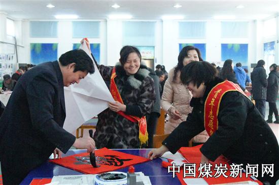 广大职工手捧一幅幅喜庆的春联笑得合不拢嘴,无不感受到矿党政对群众的关怀。一幅幅红红火火的春联布满场地,展示着一年来取得的辉煌成就,昭示着柴里煤矿“发展年”美好的开始,极大地激发了干群士气和斗志,极大地增强了企业的向心力和凝聚力,热烈的气氛也将迎春节的文化气氛推向了高潮,促进了矿井持续提升发展, 活动持续近三个小时,送出春联600多幅。此次“迎新春送春联活动”不仅送去春联,还在活动中宣传了我矿2014指导思想,激励所有员工新年要有新气象,紧跟矿党政步伐,围绕“发展年”主题和“11366”工作思路,更加紧密的团结起来,万众一心、求真务实,干事创业,奋力开创柴里煤矿各项工作新局面,全面推进矿井安全稳定、科学健康发展,为实现“平安矿井,幸福柴煤”的企业梦阔步前行!