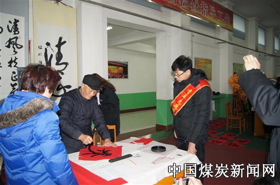 【本网讯】 过春节贴春联是我国传统的民间习俗,在2014年春节来临之际,为浓厚新春节日氛围,服务各基层单位,倡导健康向上、文明节俭过春节新风尚,1月25日上午,山东能源枣矿集团柴里煤矿在文体中心大厅组织开展“迎新春、送春联”活动。本次活动邀请了老年大学书法协会8名书法家现场书写。并组织二十余名青年志愿者积极参加到活动中来,裁纸、晾晒春联,忙得不亦乐乎。现场人来人往,热闹非凡,闻讯赶来的职工络绎不绝,很快就把书写对联的场地围拢了起来,每一位书法老师的面前都排着长长的队。老师们更是不遗余力,热情地迎接每一位前来参加活动的员工,并用他们的妙笔将那些吉祥、祝福的话语呈现在每个参与者的面前。