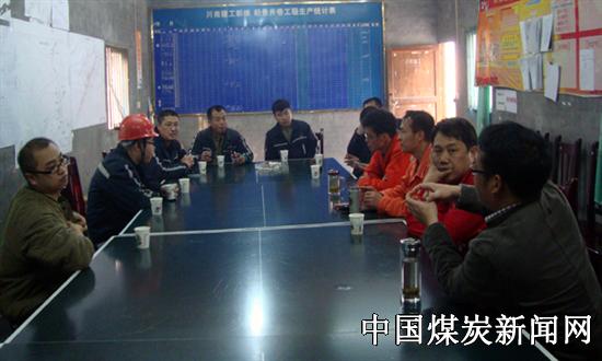 贾总一行首先深入主斜井治水工作现场进行观摩学习,项目部技术负责人对治水布孔,安装导管,施工止浆墙,安装钻机,布孔角度,初次掘进到停头治水,施工混凝土等系列工艺进行详细介绍。随后召开了座谈会,针对广旺船景公司+255排矸暗斜井现阶段在治水过程中遇到的问题(如何过破碎带、遇裂隙水如何处置,针对不同的岩性如何采取不同布控孔方案以及钻眼时卡钻等现象)进行了交流探讨。