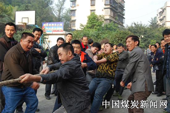 图为重庆永荣青鹏公司举办了“决战100天,打好攻坚战”职工拔河比赛场面