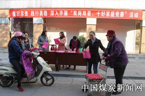 【本网讯】为推进“双岗双星、十好家庭竞赛”活动的有效开展,11月6日,兖矿集团济二矿岗山管理中心女工委开展“信息宣传一条街”活动。