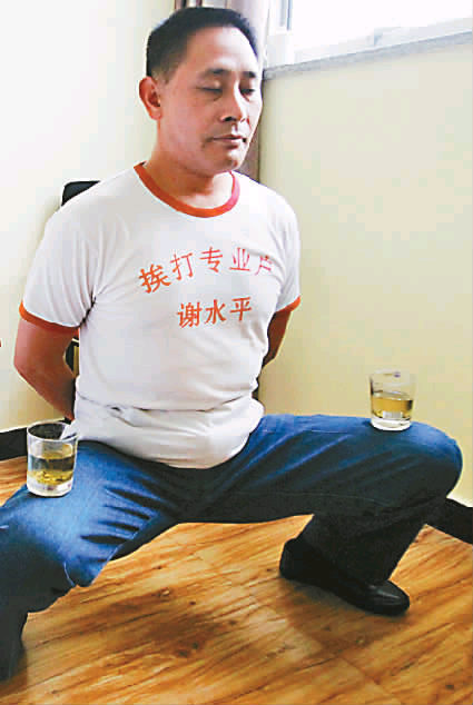 谢水平每天都会将茶杯放在腿上蹲马步 收入 人生 坚持不收徒懂得退一步 这两年来在媒体上露脸多了,谢水平说,至少有200人找到他想拜师,“最多的时候每天有二三十通电话拜师。” 这些人中,有的说想学气功,有的只是想通过他出名。谢水平说,曾有一名年轻女歌手想拜他为师,不学气功,只想跟着他上电视,承诺交3万元学费。“不管出于什么目的,我都会婉言谢绝。”谢水平说,不收徒弟一是怕教不好,让别人受伤,另外,自己也没有时间教。 他告诉记者,在前几年,酒吧找他表演,会要求他签免责协议,生怕发生意外。有时会遇到一些喝醉酒、故意闹事的顾客。“他们不按照规定打我腹部,对我拳打脚踢,还搧耳光。”谢水平说,心里虽然生气,仍然会赔着笑脸,“不能给老板惹事,不然就砸了自己的饭碗,以后没人找我了。” 时间一长,谢水平看多了人情冷暖,发现有的顾客只是纯粹好奇,有的是不服气,也有真的想发泄的。面对这些人,他有不同的选择,“如果有人真的需要发泄,我有时会故意退一步,或者向后仰,让他发泄出来,心情就好了。” 最初,他只是把这份工作当成糊口的本事,把尊严放在一边,但见的人多了,他开始觉得挨打并不丢脸,也没有失去尊严,反而是在传递正能量,“我就是要大家看看,我谢水平做着一份在别人看来低贱的工作,仍然能够坚持,你们遇到的困难又算什么呢?”(重庆晚报记者 熊志翔 刘润 实习生叶蓉 摄影报道)