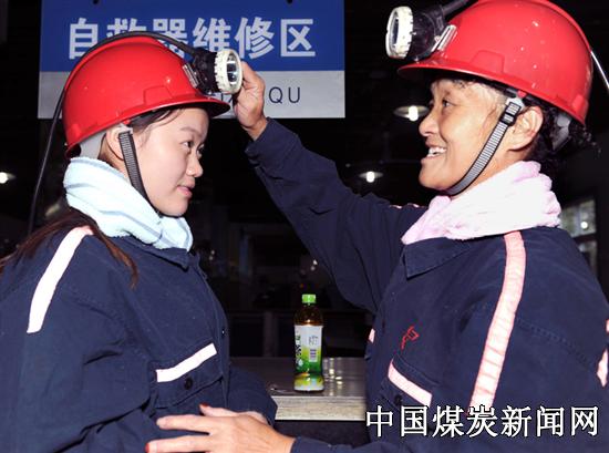 【本网讯】11月4日,安徽淮北矿业朱仙庄矿老协安员张桂英(右)正在为新协安员王芳整理着装,准备下井慰问一线职工。建矿30多年来,该矿一批又一批妇女协安员常年坚持进区队、下车间、到班组,用真情打动职工,用柔情感化职工,教育、引导职工按章操作、远离“三违”,被誉为安全“半边天”。