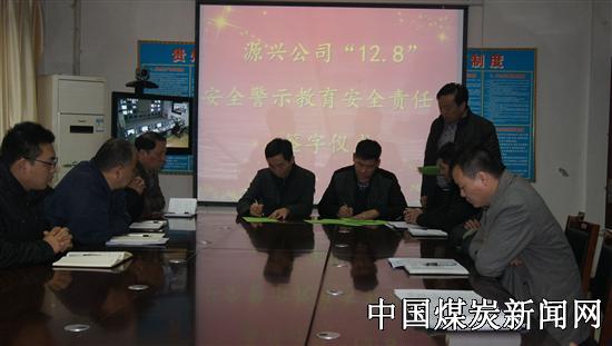 该矿利用早调会时间召开了“12.8”安全警示教育动员大会,引导广大干部职工要坚决落实“安全第一、生产第二”和不赶产、不延点的要求,坚决落实隐患排查制度、坚决落实“三违”治理工作、坚决落实规程措施现场兑现、坚决落实质量标准化创建、坚决落实干部值班及请假规定,牢记事故教训,共筑安全防线,为2014年划上一个圆满的句号。会上,班组长代表采煤工区班长王德海宣读《安全倡议书》,采煤一区、采煤二区区长、机运科、通防科长代表基层单位与矿党总支书记、总经理何畏明签订了《安全承诺书》。