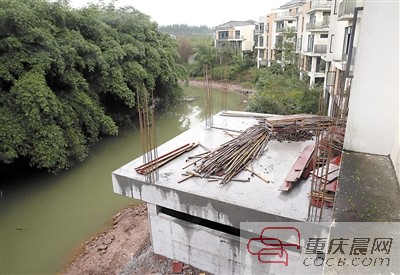 资料图 昨日,巴南区一品全兴别墅区,业主私自搭建游泳池,阻挡了河道。 重庆晨报记者 苑铁力 摄 有钱就是任性?昨日,一位读者向重庆晨报服务中心投诉,声称巴南区一品全兴别墅一名业主修建违规建筑,甚至占用了一品河河道。重庆晨报记者对此进行了调查。 自家后院违规搭建游泳池 昨日下午1点过,天上飘着小雨,巴南区一品镇汇景湾小区(一品全兴别墅)里很是安静。而小区3栋8-2背后的水泥平台,仍然没有拆除。 这是一幢2层楼高的联排别墅,背靠一品河。从侧面看过去,一个近50平米的水泥平台正拔地而起,上面堆着木板、钢筋等建材。 水泥平台是业主准备修来用作游泳池的,但属于违规建筑,已经被叫停。 沿着一品河河道左右眺望,这个水泥平台异常显眼,只此一家。“可能有一个月时间了哟。”附近的装修工人透露出装修时间。 该栋别墅被一道绿色塑料网隔离开来,里面正在装修施工,一个6根钢筋构成的架子摆放在门牌号前,旁边院子里也放有不少建材。记者进去敲门,但无人应答。 相关部门:责令一个月内自行拆除 小区物管工作人员表示,8-2的业主修建的游泳池的确是违规建筑,之前在修建时他们也曾经制止过。 “我们就不让他运材料这些,但是最后他们都强闯进来了。”工作人员无奈地说,由于没有执法权,对业主搭建违规建筑的行为只能进行劝阻,但效果有限。 随后,记者致电巴南区水政监察大队。执法队员表示,经过调查确定该建筑为违法建筑,虽然目前是枯水期还看不出后果,一旦涨水该违法建筑就会妨碍水流并影响河道安全,目前已经责令该业主在一个月内自行拆除。 据了解,该业主的行为违反了《重庆市河道管理条例》第19条和38条:河道管理范围内的土地和岸线的利用,应当符合行洪、输水的要求。禁止在河道管理范围内建设妨碍行洪的建(构)筑物,倾倒土石、尾矿、垃圾、弃渣,从事影响河势稳定、危害河道堤防安全和其他妨碍河道行洪的活动。 应由县级以上河道主管机关责令其停止违法行为,限期清除障碍或采取其他补救措施,可处5万元以下罚款。造成损失的,应赔偿损失。