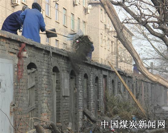 该分公司召开集中整治环境卫生专题会和周六整治工作启动会,划分5个整治小组,任务分解到服务队,利用周六休息日,组织180余名职工,分赴住宅小区、“两堂一舍” 区域,展开小区煤棚顶、矿山一条路、住楼前后、浴池后院、通风区楼后等8个点区大清除。经过6个多小时全力整治,区域环境焕然一新,为矿区职工家属欢度元旦新年佳节,创建干净整洁环境。 图片1: 清扫小区煤棚顶杂物