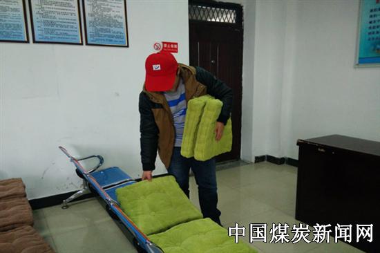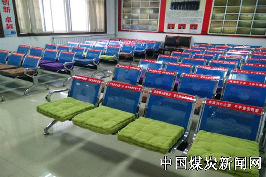 五沟煤矿掘进团支部会议室你会看到到暖人的一幕,会议室的铁座椅上都增加了一个厚厚的棉垫。