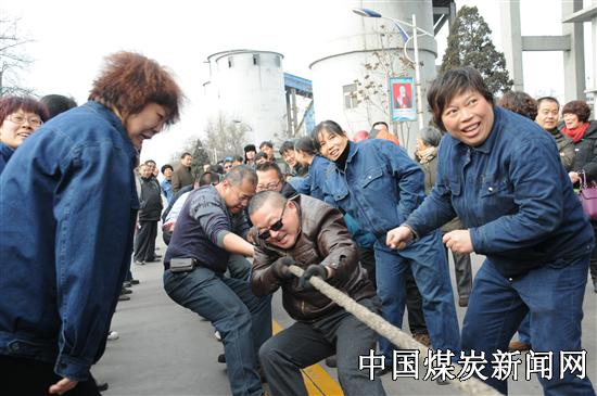 【本网讯】为喜迎2015新年的到来,进一步活跃职工文化生活,神宁集团太西洗煤厂举办迎新春文体活动,员工在共同庆贺一年来工作收获的同时,在喜庆的气氛中共同迎接新春的到来。图为12月30日举办的拔河比赛。