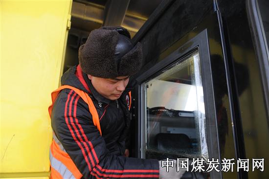 【本网讯】随着气温下降,近日,神华宝日希勒能源公司露天矿采取多项防寒防冻措施,为大型运输、采掘设备选用适当标号的燃油,加注防冻液,更换防冻润滑油,另外为防止上霜为车窗粘贴火玻璃,确保煤炭生产设备在冬季安全高效运行。图为司机利用生产间隙时间为车窗粘贴火玻璃。