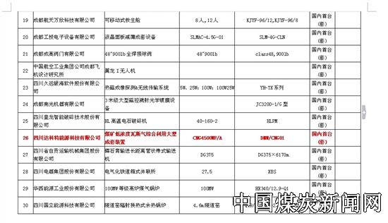 达科特能源科技有限公司“煤矿低浓度瓦斯气综合利用大型成套装置”被认定为四川省重大技术装备/国内首台(套)产品