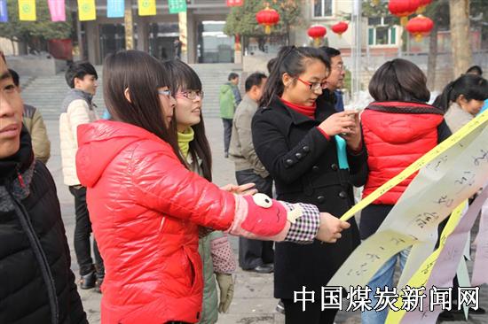 ![]() ![]() ![]() ![]() ![]() 2月14日(农历正月十五)下午,陕煤铜川矿业公司金华山矿工会举办的元宵节灯谜有奖竞猜活动在矿办公院内拉开了帷幕,为积极迎战煤市寒流的矿山营造了良好的节日氛围。 14日(农历正月十五)下午,该矿办公院内热闹非凡,由矿工会举办的元宵节灯谜有奖竞猜活动热闹进行。高挂的大红灯笼, 迎风飞舞的彩旗,红、绿、紫、黄等多种颜色的百余条灯谜,让闻讯赶来的职工家属感受到了元宵佳节的喜庆气氛。在悬挂谜语的彩条前,职工家属或单兵作战,或父子上阵,或全家总动员,开动脑筋,集思广益,破解灯谜。灯笼、彩旗、灯谜、人群汇成矿区一道亮丽的风景线。 百余条灯谜涵盖了历史、人物、教育、地理等多方面的知识,职工家属在猜谜语的同时,学习了新知识,开阔了新视野。收获了纪念品,收获了欢乐,极大地促进了职工文体活动的开展,更为传统民俗节日增添了新的内容。职工家属喜笑颜开,欢笑声祝福矿区人民幸福安康,实现矿山梦,明天更美好!。