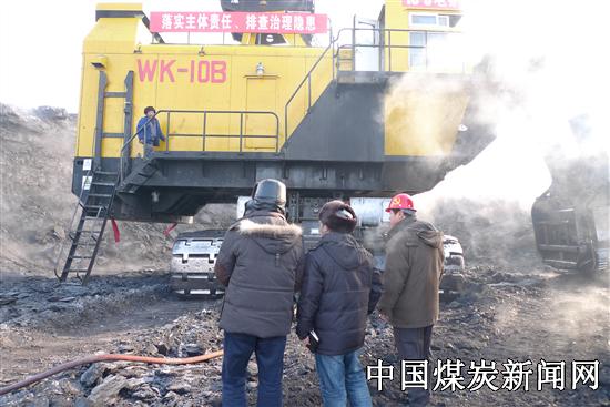 图为:2月17日,公司安检人员正在检查露天煤矿电铲状态。