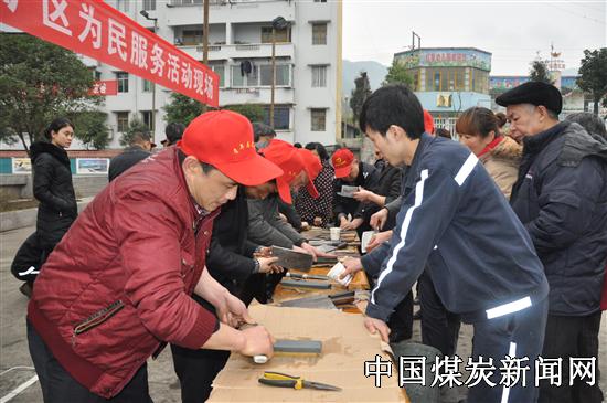 当天上午,来自基层、机关、矿医院和矿区居民的30余名志愿者,他们搬来桌椅、血压仪、体重秤,拿来磨刀石、电剪推、水桶等工具,聚集在矿部广场。他们有的为矿区员工、家属理发,有的磨菜刀、剪刀,有的修理电磁炉等电器和补搪瓷碗、盆,有的量血压、测体重。 志愿者们亲切嘱咐和热情服务,得到了矿区居民的一致好评。