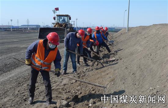 神宝能源公司露天煤矿在抓好煤炭生产工作的同时,大力开展标准化建设工作,科学规划煤炭采掘和土方剥离区域,合理设置运输道路,规范道路两侧挡墙以及各种安全标识,促进安全生产。图为:职工们在生产间隙时间修整道路两侧挡墙。