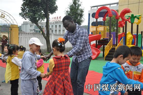 【本网讯】 4月23日上午10点,在川煤广旺唐家河矿矿区,一名青年外教正和矿区幼儿园小朋友们一起手拉手跳舞、做游戏,开始了一堂寓教于乐的英语课。 他叫丹尼斯,24岁,美国人,据幼儿园负责人介绍,他远渡重洋只身一人从美国来到中国,在北京、上海等地游学。受母亲的影响,丹尼斯希望空余时间能体验到在中国各个地方不同的生活。怀着对小朋友的喜爱,今年3月份,他来到了四川省旺苍县嘉川镇唐家河矿矿区红星幼儿园,教孩子英语,每周周三、周四上午各一节。外教的到来,使矿区小朋友较早地接触到纯正美式英语发音,为日后语言学习奠定了良好基础。外教轻松愉快的授课方式,极大的激发了小朋友们的英语学习热情和浓厚兴趣,有助于矿区儿童更好的学习成长。