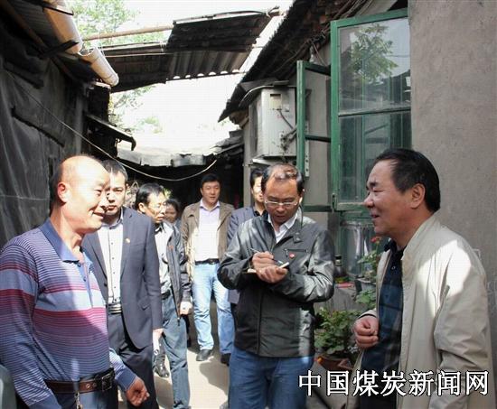 张友良总经理一行来到采煤三队程彦创的家,他进房后拉起程彥创孩子的手亲切说:“爷爷看你来了。” 采煤二队李振虎,是来自山阳县的一名农民工,携妻儿4口来到矿区3年,一家人住在沟塘子小房里,加上妻子有病,儿女上学,生活不宽裕。张总看到李振虎住的简陋小房说道:“你咋不要住楼房?”李振虎回答:“农民工矿上没有分配房的规定。”“依你的情况,给你分配住房行吗?” 张总说。李振虎为难说道:“我来矿时间不长,无钱购买分配住房。”张总令在场工作人员记上这一反胦,待后当作一项民生问题来解决,决不能让农民工住房上受作难。 乔映侠是个工亡家属,家有3个子女。张总一进房内就同3个孩子打招呼,询问了她们学习情况,看到墙上贴有学生奖状,张总掏出百元分别送给3个孩子。大孩子懂事不愿接受,张总蹲在孩子面前,拉过小手说:“爷爷给你钱是让你买学习用具,以后学习上有啥难事,就给爷爷打电话,我会常看你们的。”张总转身对乔映侠报了自己的手机号,有事随时打电话即刻办,并要求在场的下峪口分公司领导要常关注乔映侠一家的生活,特别是孩子上学有困难要急事急办、特事特办,决不能亏了孩子们上学的大事。 整个上午,放弃星期天休息,张总一行走访了6户职工群众家庭,用行动践行党的群众路线教育活动,受到矿区职工群众的称道。 照片1: 走巷串户