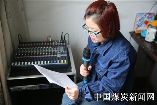 图为宣传人员正在认真播报贾董事长在3月31日的安全生产视频会上的讲话精神。