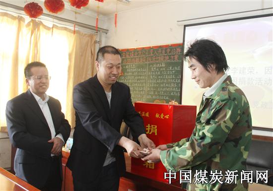 本网讯  近日,神宁集团金能煤业分公司生产准备二队为因火灾致困员工李建荣捐款6000元。李建荣是该队的一名劳务工,去年刚参加工作,正当李建荣努力工作,畅想人生的时候,家中发生火灾,直接经济损失3万余元。当得知这一情况后,该队党支部立即发出爱心倡议,全队138名工友纷纷伸出援手,把6000元捐款被送到了李建荣颤抖的手中。图为捐款现场。(张蓉)