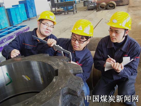 本网讯  近年来,山东煤机集团莱芜煤机公司以开展创建“工人先锋号”活动为载体,引领广大职工争创一流工作、一流服务、一流业绩和一流团队,努力提升职工队伍素质,紧紧围绕技术创新、管理创新、服务创新、产品创新、提高产品质量、节能降耗和安全生产等重大问题,发动和组织职工开展劳动竞赛、岗位练兵、技能比武、技术协作、发明创造等一系列卓有成效、形式多样、方法灵活的创建活动,在职工中掀起了赛管理、讲效率、比贡献、建设新煤机、争当新功臣的热潮。先后涌现出市级“工人先锋号”先进集体8个,公司级“工人先锋号”先进集体50个。图为荣膺“莱芜市工人先锋号”称号的破碎设备车间技术组技术人员正在攻关技术难题。