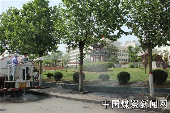 5月19日,阳泉煤业集团公司二矿生产服务公司员工正在对矿山公园草坪浇水。近年来,该矿把改普职工生活区环境作为一项重要工作来抓,大力开展绿化,美化活动,使职工生活区内显现出花园景观。