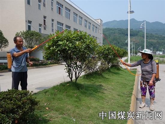 【本网讯】随着天气变暖,各种园林树木病虫害进入高发期。为了给员工家属营造一个安全、卫生、舒适的矿区环境,5月30日,川煤广旺船景煤业公司为矿区内的绿化带树木喷洒防治病虫害的农药。