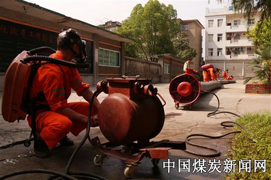 原煤炭工业部救护队长萍乡培训中心第46期新队员培训班第四次佩机演习