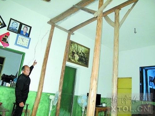 村民担心房屋垮塌,打木桩支撑房梁 ■事发湘潭县云湖桥镇青峰村;村民认为这与附近一家煤矿有关 ■当地政府正在组织协调和处理 湘潭在线6月7日讯(湘潭晚报 文/图 记者 欧阳铁强)近段时间,湘潭县云湖桥镇青峰村有不少村民向本报反映,他们的房屋地基下沉,四处开裂,并且受损情况越来越严重。他们担心哪天房屋会有倒塌的危险。6月6日,我们对此展开了调查。 客厅一声巨响,以为发了地震 邓师傅家住云湖桥镇青峰村,他家前坪、过道、墙壁、屋檐上都是裂缝,长的有几十厘米,而2楼护栏甚至已经与墙体完全分开。邓师傅告诉我们,最让他忧心的是楼梯间的一道裂缝。检测人员曾说,这里很有可能垮塌。 “几个月前的一天早晨,我家客厅地板发出了剧烈的破裂声。我父亲当时还以为是地震,吓得赶紧往外跑。一家人也因此吓得半死。”邓师傅说,最近房屋开裂更厉害了。 今年4月30日,湘潭县房屋安全鉴定办对邓师傅家的房屋进行了鉴定,鉴定结果为C级危房,建议进行专业大修后再使用,并做好相应的安全防范措施。 “家里人每天心里发慌,生怕房屋倒塌。像我家的这种情况,村里面还有几家。” 邓师傅说。 客厅里打木桩,防房屋垮塌 随后,我们来到了同村的夏师傅家。 夏师傅家房屋的开裂情况同样让人触目惊心,6根粗大的木桩立在客厅中央,顶着房屋的主梁,很难想象这种环境下还住着人。 “如果不用木桩顶住,房屋已经塌了。”夏师傅说。 与邓师傅家的情况一样,夏师傅家的房屋同样被鉴定为C级危房。周边村民告诉我们,房屋地基下沉开裂,与附近一家煤矿有关。 邓师傅介绍,早些年,煤矿每年都会对房屋受损的村民,提供几百元到一千多元不等的维修补助。然而近一年多以来,由于煤矿更换了老板,就没有补助了。如今,房屋损毁情况越来越严重,已经不是维修的问题了。他们多次找到煤矿以及当地政府,但事情一拖再拖,得不到解决。 “现在的老板说,这些问题要由前任老板负责。”邓师傅说,近两个月以来,煤矿一直在抽矿洞内的积水,他们的房屋损毁情况也越来越严重,“这两者之间肯定有关系”。 煤矿:听从政府处理意见 随后,我们来到楠竹山煤矿了解情况。 我们在矿区看到,大量的地下水从矿洞内抽出。煤矿一位朱姓负责人说,抽地下水对附近村民家的房子没有影响。 对于邓师傅和夏师傅家房屋开裂的情况,这位负责人表示很冤枉。“我们是江苏人,这个煤矿以前的老板是浙江温州人。我们接手煤矿一年多来,一直在修复、扩建煤矿的场地设施,还没有生产。受损房屋的赔偿问题,应该是由前老板解决。” “虽然这件事跟我们没有关系,但我们会听从政府的安排和处理意见,并承担应有的责任。”这位负责人说。 安监:正在组织协调 6月6日,我们将这一情况反映到了市安监局。 工作人员介绍,他们已经接到当地村民对这家煤矿的投诉。这家煤矿属于雨湖区管辖,目前当地政府正在组织协调和处理。
