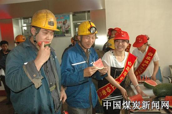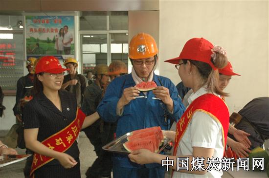 在区队学习室,该矿矿工子女刘广涛宣读了《致所有矿工叔叔的一封安全信》,信中讲述了自己父亲工伤后,生活中体会到的各种心酸,渴望父亲健全身躯的心声以及对矿工叔叔牢记安全的期盼。孩子的亲身经历和情真意切的话语,深深打动了在场的每位员工,纷纷表示“为了孩子,为了家庭,为了矿山,一定牢记安全嘱托,不安全不生产,遵章守纪,正规操作,让亲人放心”。幼儿园的小朋友表演了热情奔放的舞蹈,献上了对矿工叔叔的节日问候,协管员代表为一线员工发放了毛巾等安全慰问品,整个活动现场充满了欢乐祥和的亲情氛围。 在井口等候室,女工家属协管员们将一块块香甜可口的西瓜送到每一位即将下井的一线员工手中,并叮嘱他们:天气炎热,一定要吃好、休息好,注意好安全。