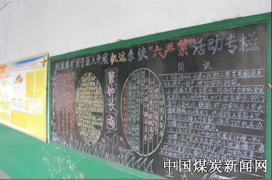 该矿各基层队不仅利用黑板报加强“双禁” 宣传,提高职工安全意识,而且利用班前会和周五安全学习会向职工贯彻“双禁”内容,让每位职工心中有“安全”, 为企业安全生产,规范操作,不违章作业。