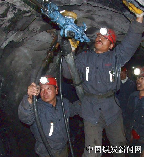 今年来,向阳矿面对企业困境采取系列措施激发职工安全高效的积极性.图为掘进工在顶板遇到破碎带时兑规作业。