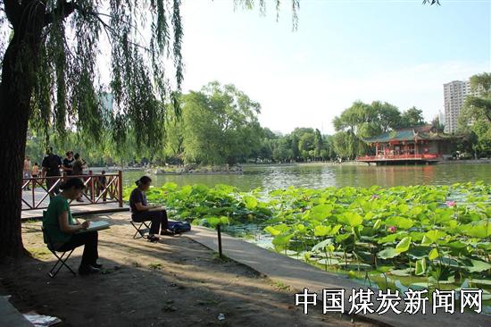 7月12日,两位女子在阳泉城市中心广场儿童公园面对荷花写生。七月正是荷花盛开的季节,在公园内,一朵朵荷花或含苞待放,或亭亭玉立,正是“接天莲叶无穷碧,映日荷花别样红”,把景区装扮得如画般惊艳动人成,为一抹靓丽的风景,吸引着市民前来争相与荷花合影留念并写生。