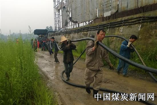 | 川煤芙蓉新维煤业综合队雨中齐力敷设电缆 | |||