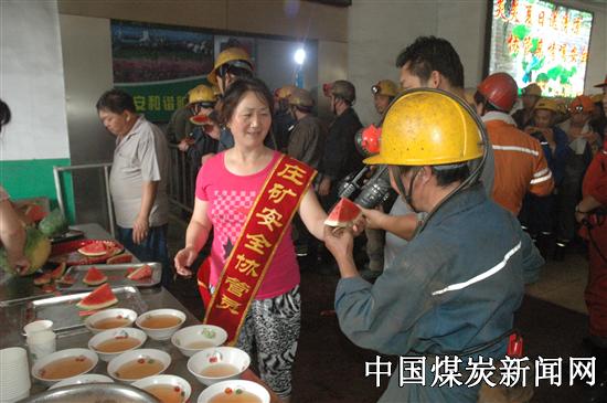 在井口等候室,下井带班的白庄矿矿长、党委书记王玉臣也参加到活动中来,和女工家属协管员们一起将一块块香甜可口的西瓜和一碗碗清凉解暑的绿豆汤送到一线矿工手中,并亲切的叮嘱矿工们天气炎热,一定要注意安全生产。即将下井的一线员工吃着香甜可口的西瓜,听着温馨的叮嘱,纷纷表示:一定增强安全生产和遵章守纪的自觉性,战高温、斗酷暑,实现安全生产,不辜负领导和女工家属协管员们的期望。